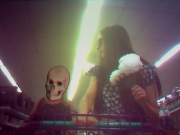 Allie X’s “Bitch” has already carved out a little place in my heart as one of my favorite videos of 2014. Instantly its eerie, swirling tones sucked me in while a voice reminiscent of Lana Del Ray–only with more heart, soul and ironic self-awareness–burst out amongst thick, pulsating synthesizers ripped straight out of an 80’s midnight movie. In fact the general tone of the video and its subtle (and not so subtle) use of apocalyptic imagery (the grainy VHS footage of a grindhouse flick; pushing shopping carts past people with skulls for heads; images of mindless consumerism; superimposed atomic bomb blasts; ironic smiley face balloons; manipulating the image with the use of mirror imaging) reminded me of one of my favorite films, Repo Man. The video isn’t flashy by any means but it subconsciously packs a huge wallop, and the song’s epic and immediately memorable melody make this one of the best songs of the year.
